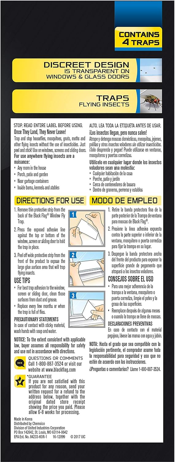 Black Flag Window Fly Trap, Transparent Glue Traps 4 Count