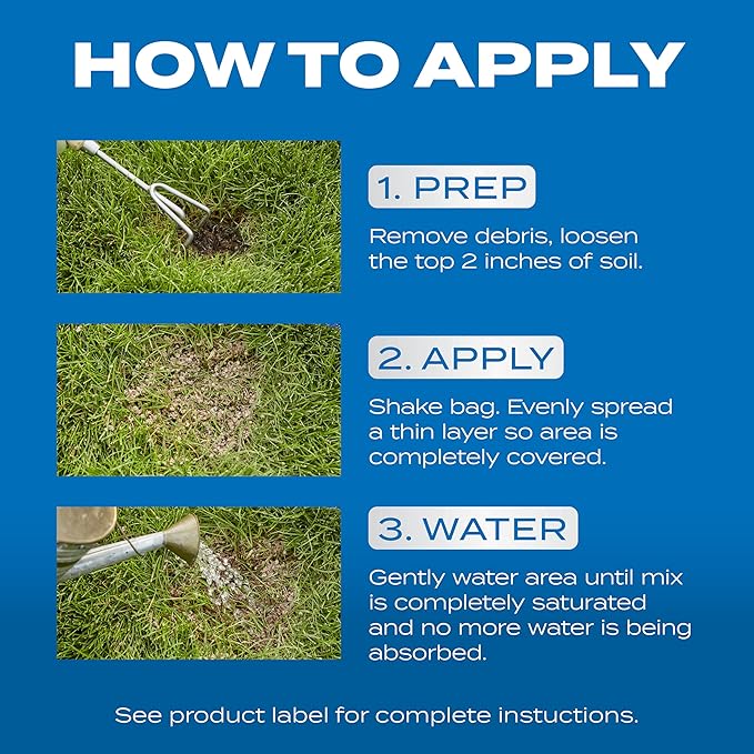 - Combination mulch, seed, and fertilizer mix specifically designed to provide all-in-one bare spot repair for your lawn