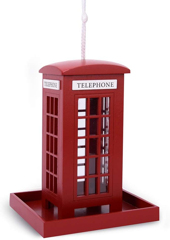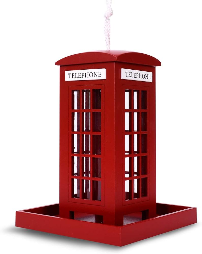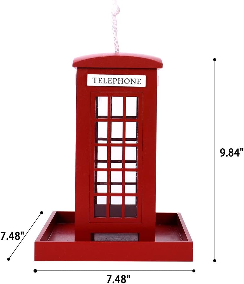 Decorative Wooden Birdhouse for Outdoor Hanging – Handcrafted Miniature Cottage Style with Blue Roof, Front Porch, and Balcony – Garden or Backyard Décor for Wild Birds (British Phonebooth)