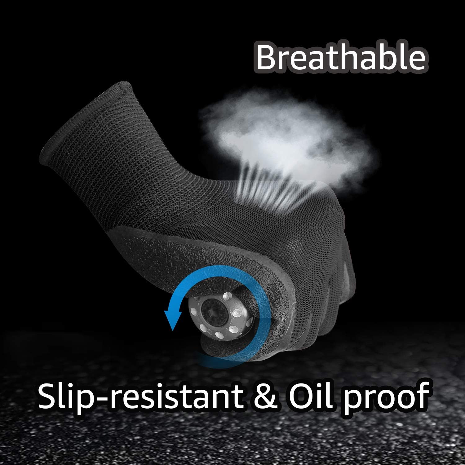- EXTURED COATING—Latex/rubber palm and finger crinkle coating, provides Anti-slip, Cut and Puncture resistant and repels light liquids