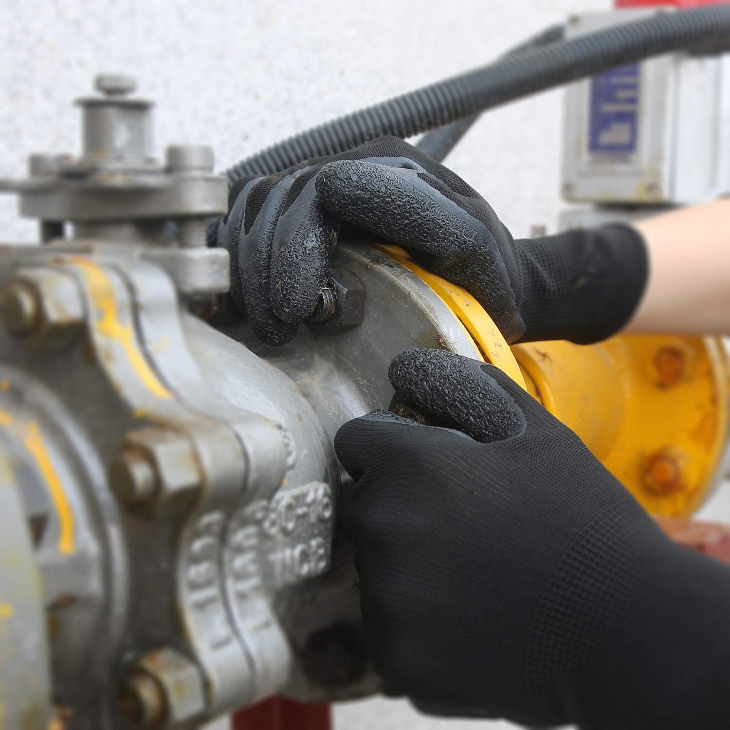 - EXTURED COATING—Latex/rubber palm and finger crinkle coating, provides Anti-slip, Cut and Puncture resistant and repels light liquids