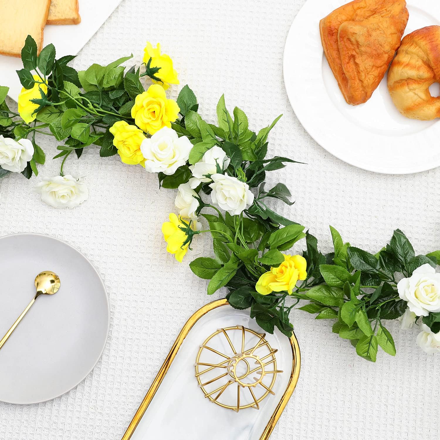 - LIFELIKE YELLOW GARLAND: The floral flower garland vines consist of light yellow roses and white roses, complement each other, turn more softer and more colorful to beauty your life