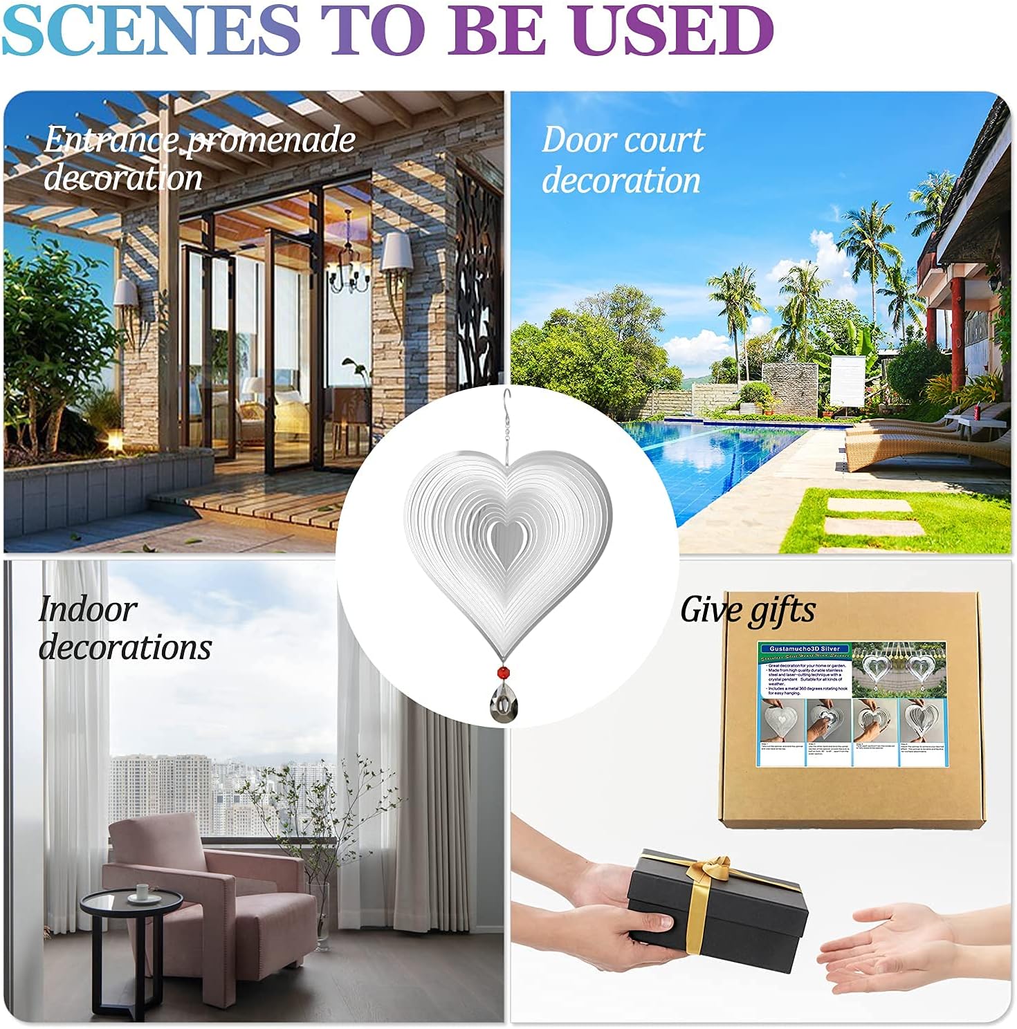 - 【3D Shape, Easy to Hang】These Wind Spinners are equipped with an S hook and a crystal pendant. You just need to gently rotate the Wind Spinner to your preferred angle and they can present a perfect 3D effect anywhere. They are extremely beautiful when shined under sunlight or rotating in a breeze.