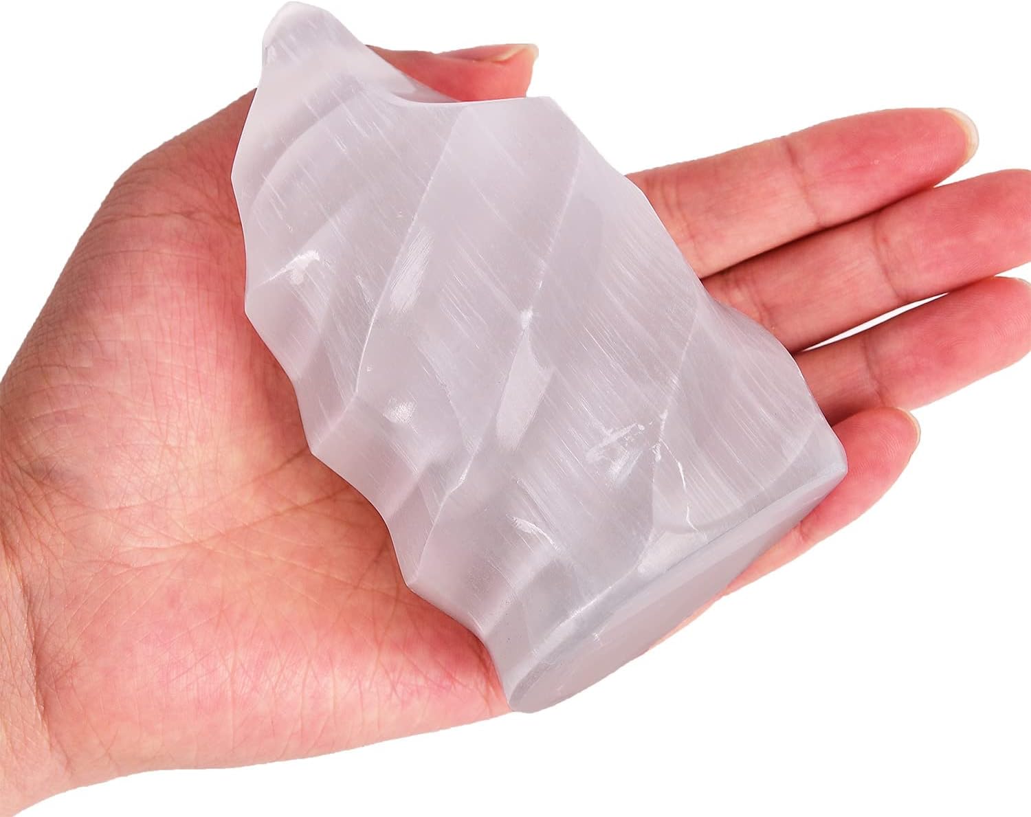 - Selenite are white and translucent and with beautiful striations, it look almost like a silky pearl.It’s usually tubular in shape, with different patterns and striations, looks unique and elegant. Please allow slight flaw as a natural product
