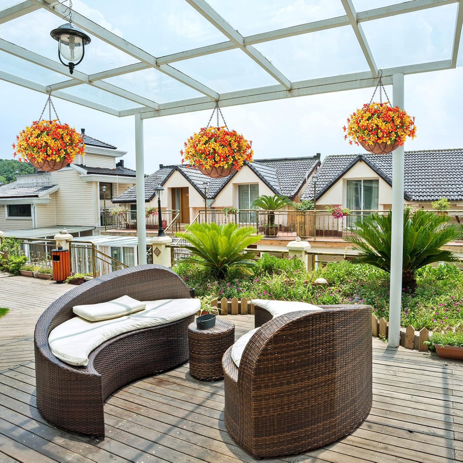 - Decoration Anywhere: Well-made fake hanging flower basket can beautify any place. Decorate the hallway, balcony, study, home, yard, garden, office, whatever you want. Beautiful artificial flowers to add color to your life.