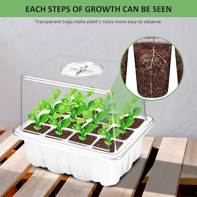 - Upgrade Heightened Lid: Increased the height of the lid to provide ample room for flowers, vegetables, fruits, herbs and other plants to grow. It is not only suitable for seed germination but also suitable for plant cutting germination. The tender plants can stay longer time in the seed starter tray.