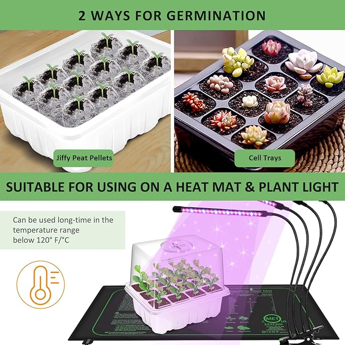 - Compatible with Heat Mat & Plant Light: Can be uses long-time in the temperature range below 48°C. A great way to foster a beautiful and healthy garden. YAUNGEL propagator comes with 20 plant labels & 2 small garden tools. Good helper for planting and breeding seedlings.