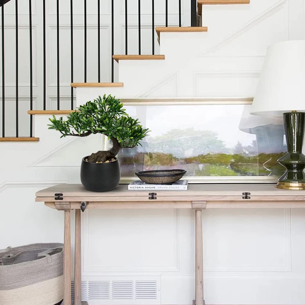 - BONSAI TREE WITH CERAMIC POTS - Artificial potted plants made of high quality PE material, non-toxic, no odor, durable, healthy and environmentally, Vivid color design and high simulation make small fake plant decor very layered and attractive. Mini bonsai tree not only a good home decorations, but also a good gift to your friends. Surprise someone special with one of our most popular artificial pine tree!