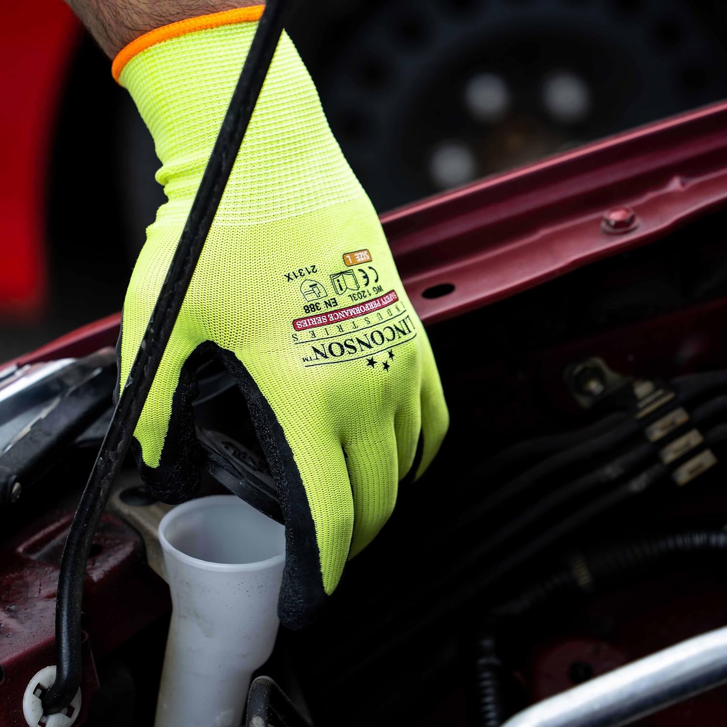 linconson 12 Pack Safety Performance Series Construction Mechanics Wrinkle Latex Work Gloves