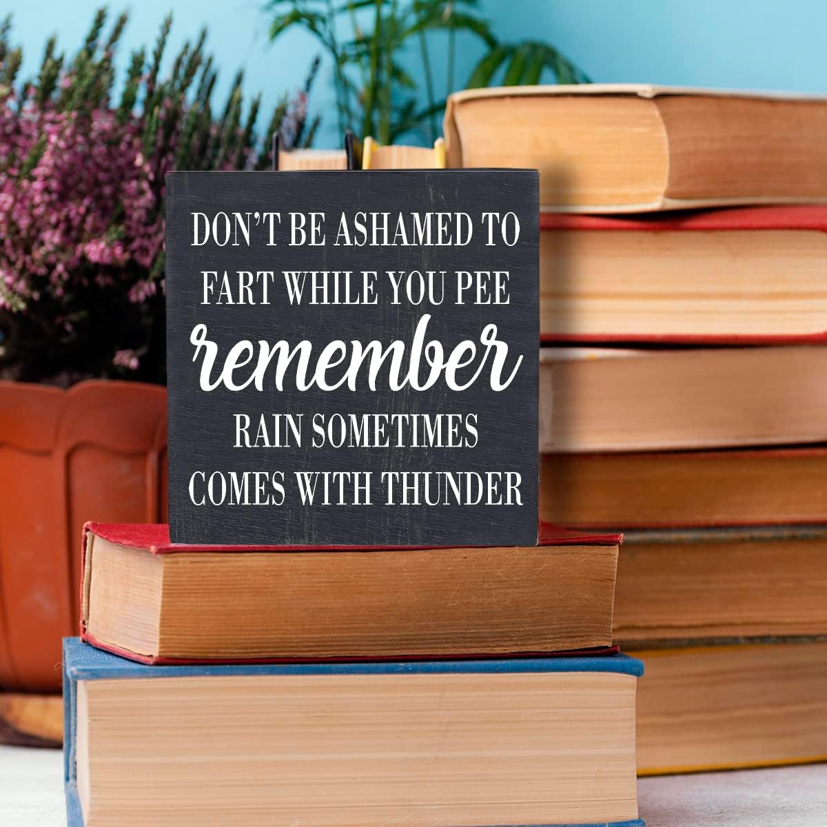 HTBIG Funny Bathroom Decor Don't be Ashamed to Fart While Peeing Toilet Washroom Sign Wooden Box Sign Rustic Black Wood Block Sign for Home Farmhouse Bar Toilet Washroom Shelf Decoration living room