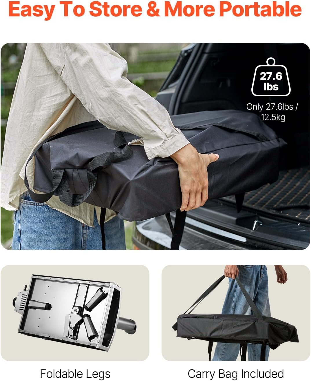 - Portable Outdoor Oven: This pizza oven boasts a lightweight 28.9 lbs, making it easy to carry to your backyard, campsite, beach, or any outdoor gathering place. Its foldable legs make it even more compact, and we also provide a wood pellets shovel and carry bag for added convenience.