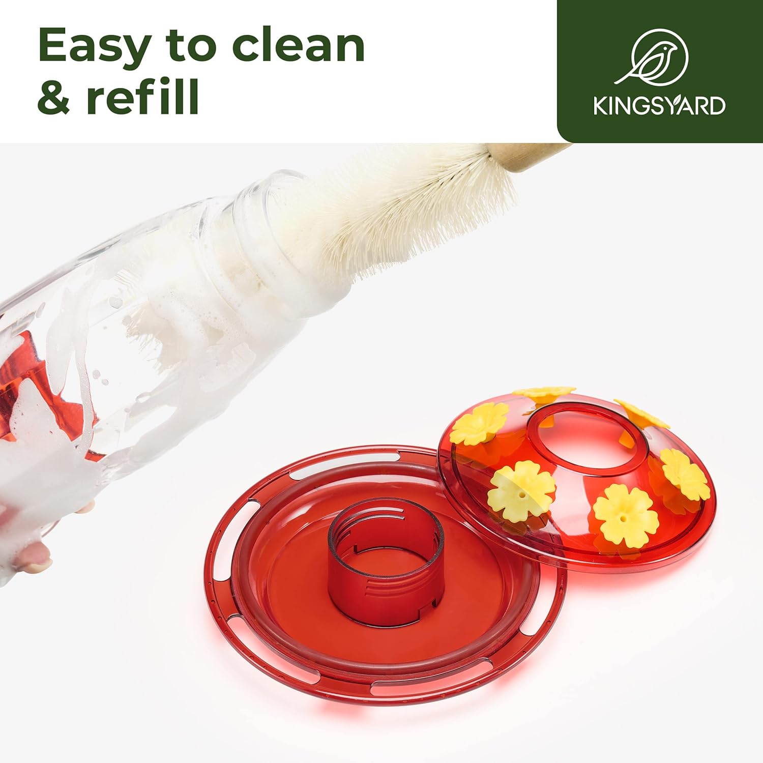 Kingsyard Hummingbird Feeder for Outdoors Hanging - 6 Bee Guard Feeding Ports & Built-in Ant Moat, Wild Bird Feeder for Outside Garden Yard Patio 16 Oz, Clear