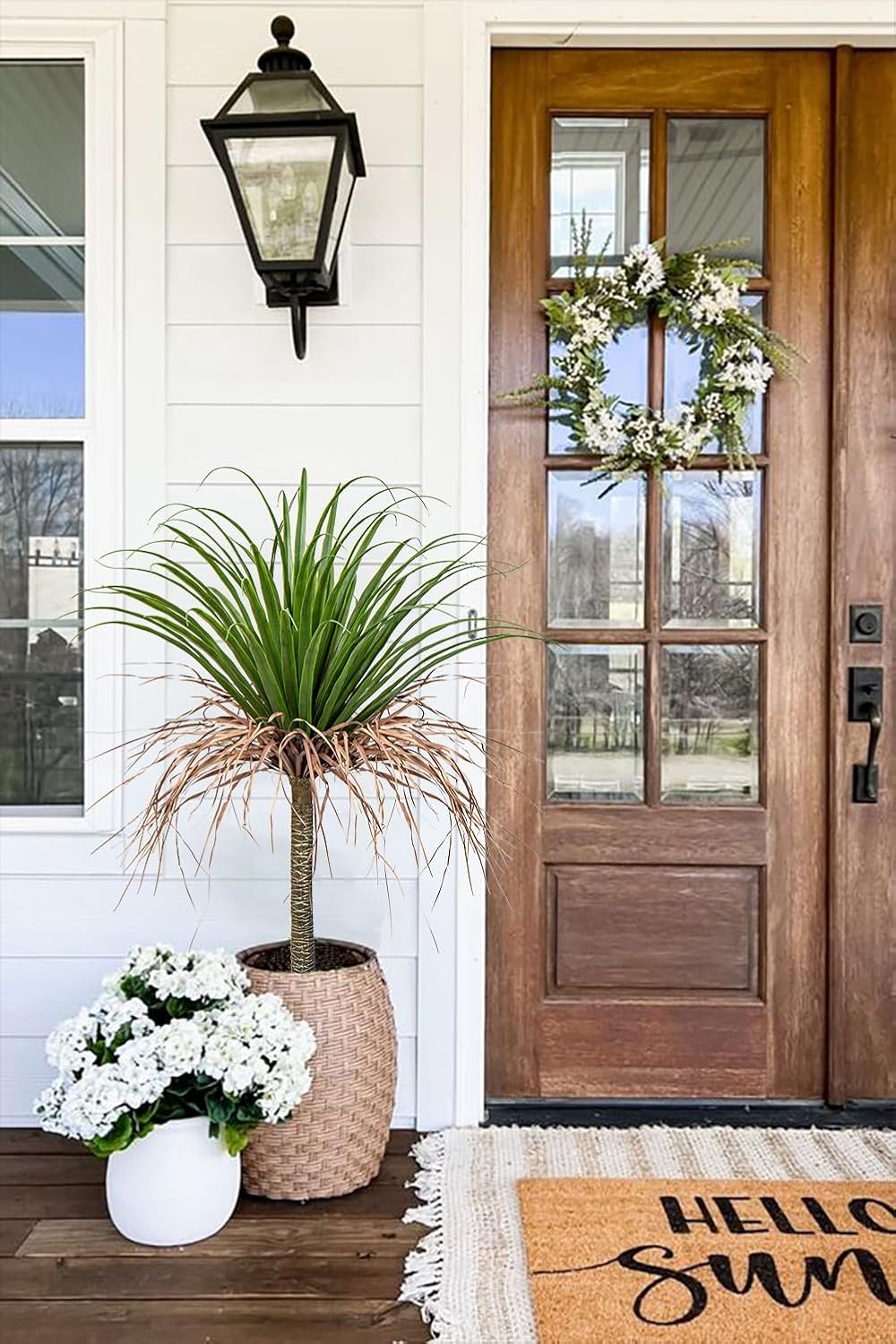- 【Premiun Quality Materials】The package comes in 2pcs artificial fake agave plant potted. The indoor outdoor agave tree trunks and leaves are made out of premium quality polyester materialwhich makes it so easy to wipe clean. Leaves and grassmay flatten and deform during transportation, You can use a hair dryer to blow shape it when you receive the tree.
