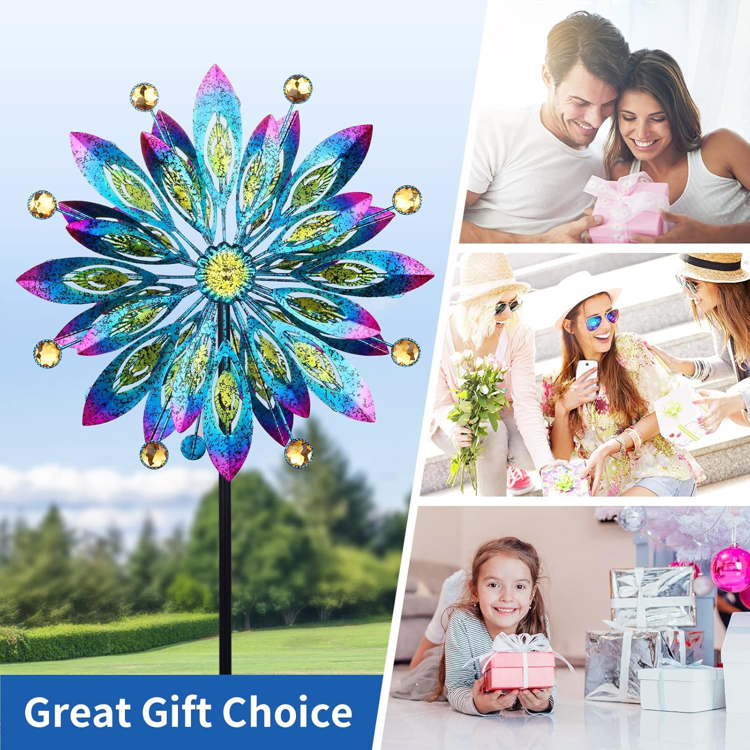 - Wind spinner for yard and garden designed with vibrant colors and adorned with fashionable yellow gems,which is a stylish addition to your outdoor space