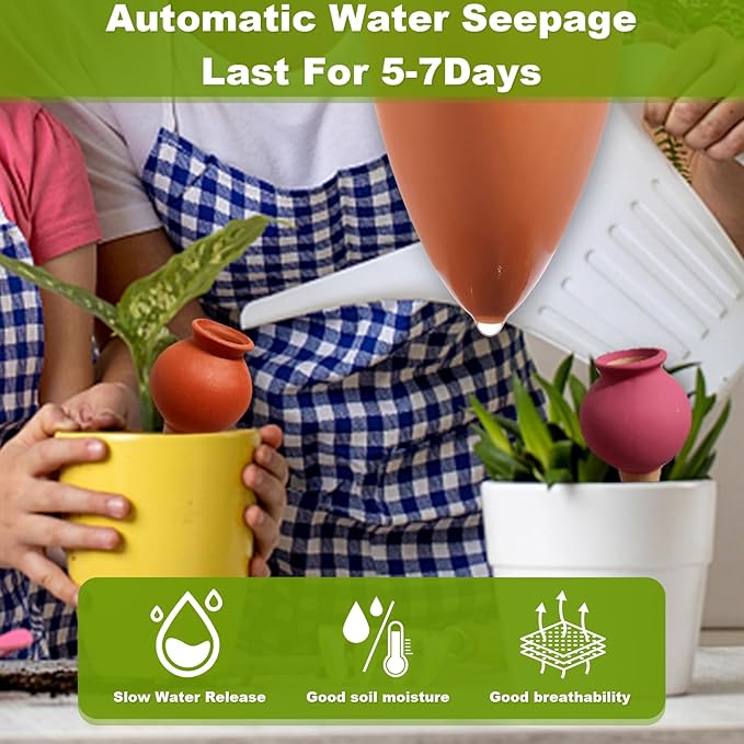 - 【Deep Root Hydration & Anti-Rot Design】 Unlike plastic globes that cause surface moisture buildup, our spikes deliver water deep into the root zone. This ancient Olla-inspired technique keeps the soil surface dry to deter fungus gnats while ensuring the roots can "breathe" through the porous clay, effectively eliminating the risk of root rot from overwatering .