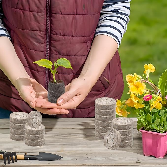 - 🎍 【How to use】: First, put the peat moss seed starter into a starting tray or container with water, absorb enough water to make it swell; second, tear the circle by hand or cut the circle with scissors, and then insert the seeds into the soil; third, keep the temperature and humidity suitable for planting the plants; lastly, after the seeds have germinated and grown up, transplant the seedlings into pots or gardens, and take good care of them, and harvest the vibrant greens, colorful flowers.