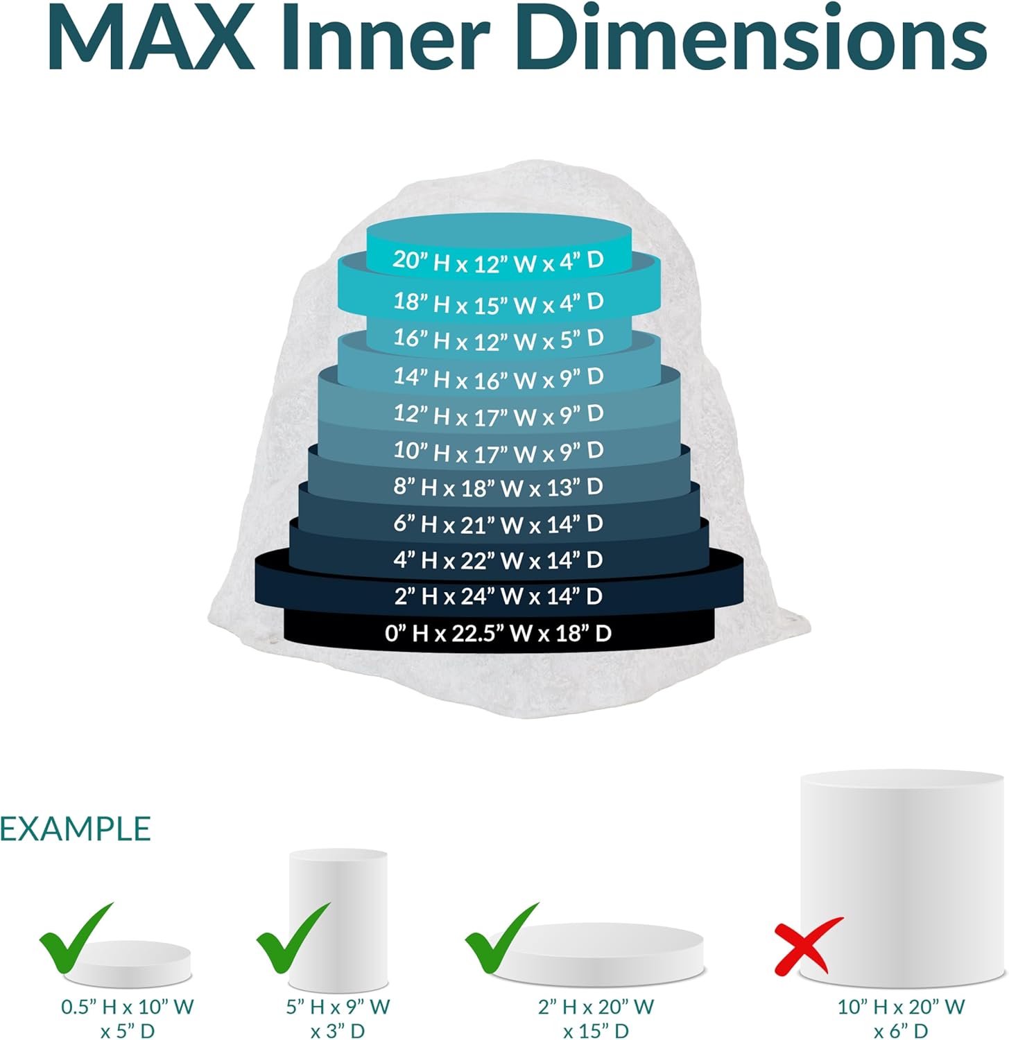 - COVERS WELLS, SEPTIC TANKS, AND MORE: Use this artificial landscape rock to cover unsightly objects in the yard or hide a spare key discreetly. The artificial boulder measures 24.5" W x 21" D x 21.5" H and weighs 5.2 lbs. The stakes included with the rock measure 1" W x 12" H each.