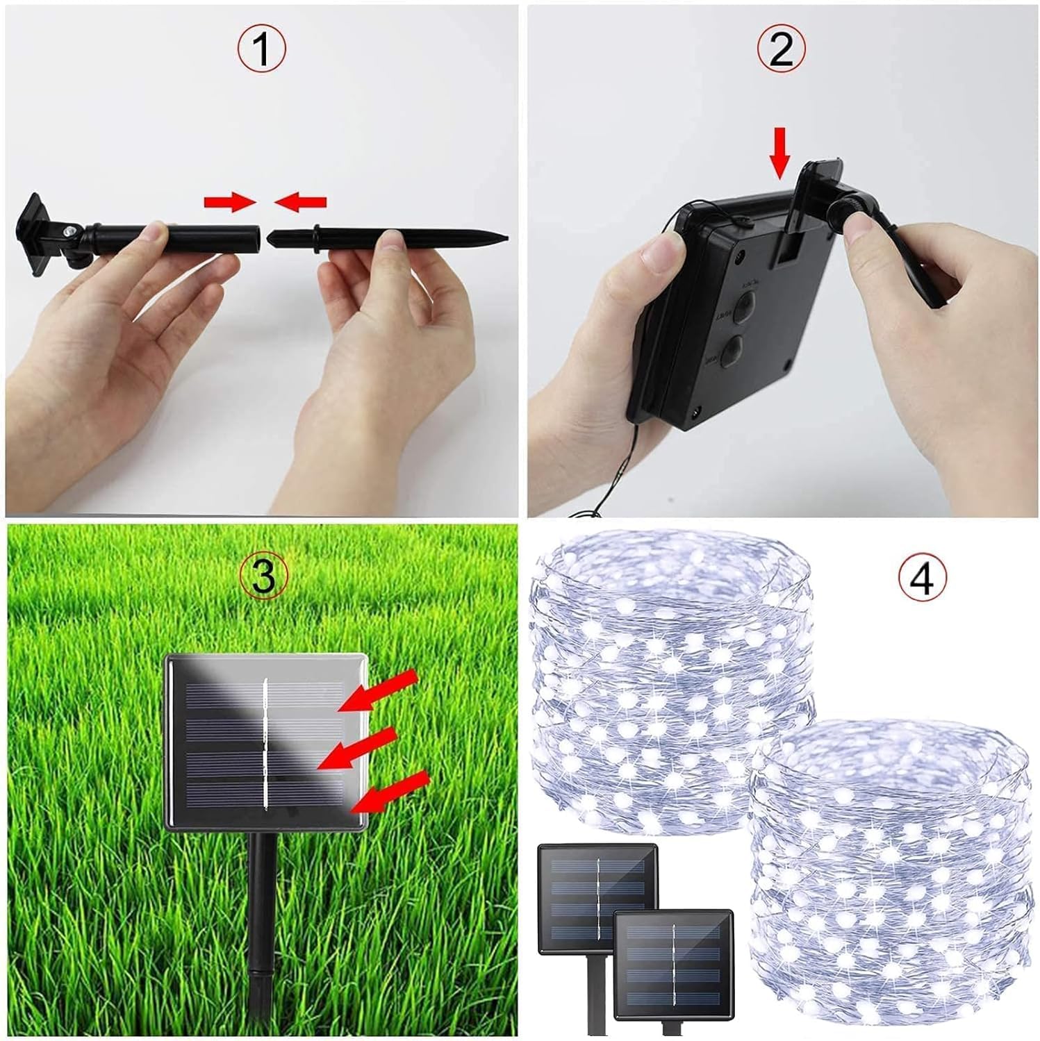 - 【New Upgraded Solar String Lights Outdoor】: Super Bright 2-Pack Each 72ft 200 LEDs Cool White Christmas String Lights with Upgraded LED Bulbs, Higher Conversion with Larger Size Solar Panel, Larger Capacity Battery(1800mAh ), IP65 Waterproof Performance.