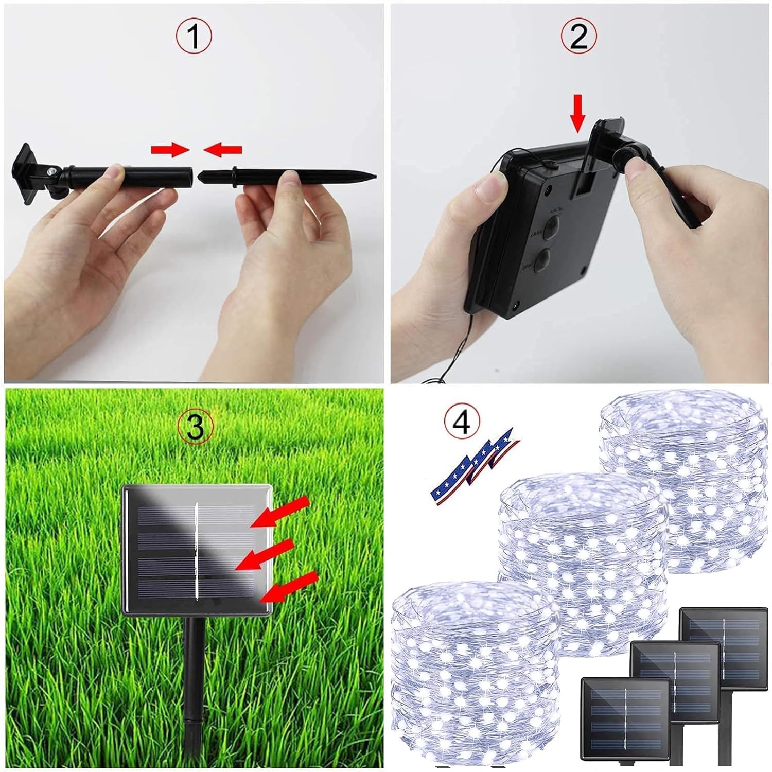 - [Solar Powered & Auto On/Off]: This string lights for outside are solar powered and waterproof, with no electricity cost. Larger Christmas solar panel with quick charging technology brings higher solar energy conversion, ensuring 10-12 hours of lighting after being fully charged in 8 hours. Simply place the battery panel in a sunny area, and the lights will automatically charge during the day and light up at night.