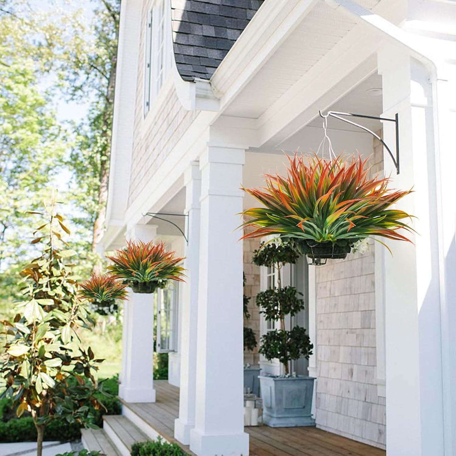 - Outdoor artificial plants are widely used: faux plants indoor can be placed outdoor decorations for patio, on the front porch, backyard, front yard, garden, balcony