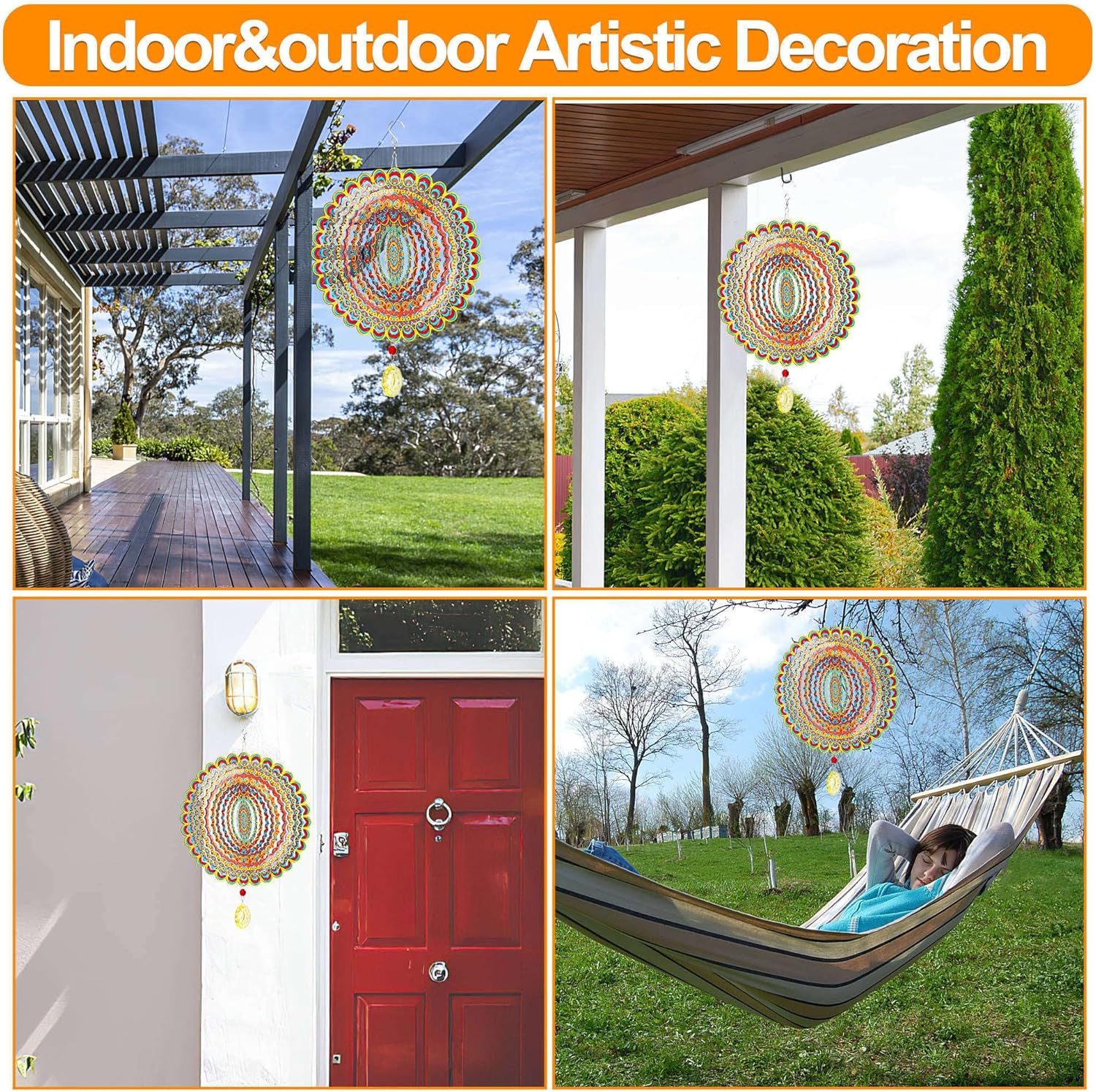 - 【Excellent Material, Greatly Made】Our Wind Spinners are cut from bright-colored stainless steel. The surface is protected by an eco-friendly material coating which prevents colors from fading when hung outdoors. Perfect for yard decorations outdoor.