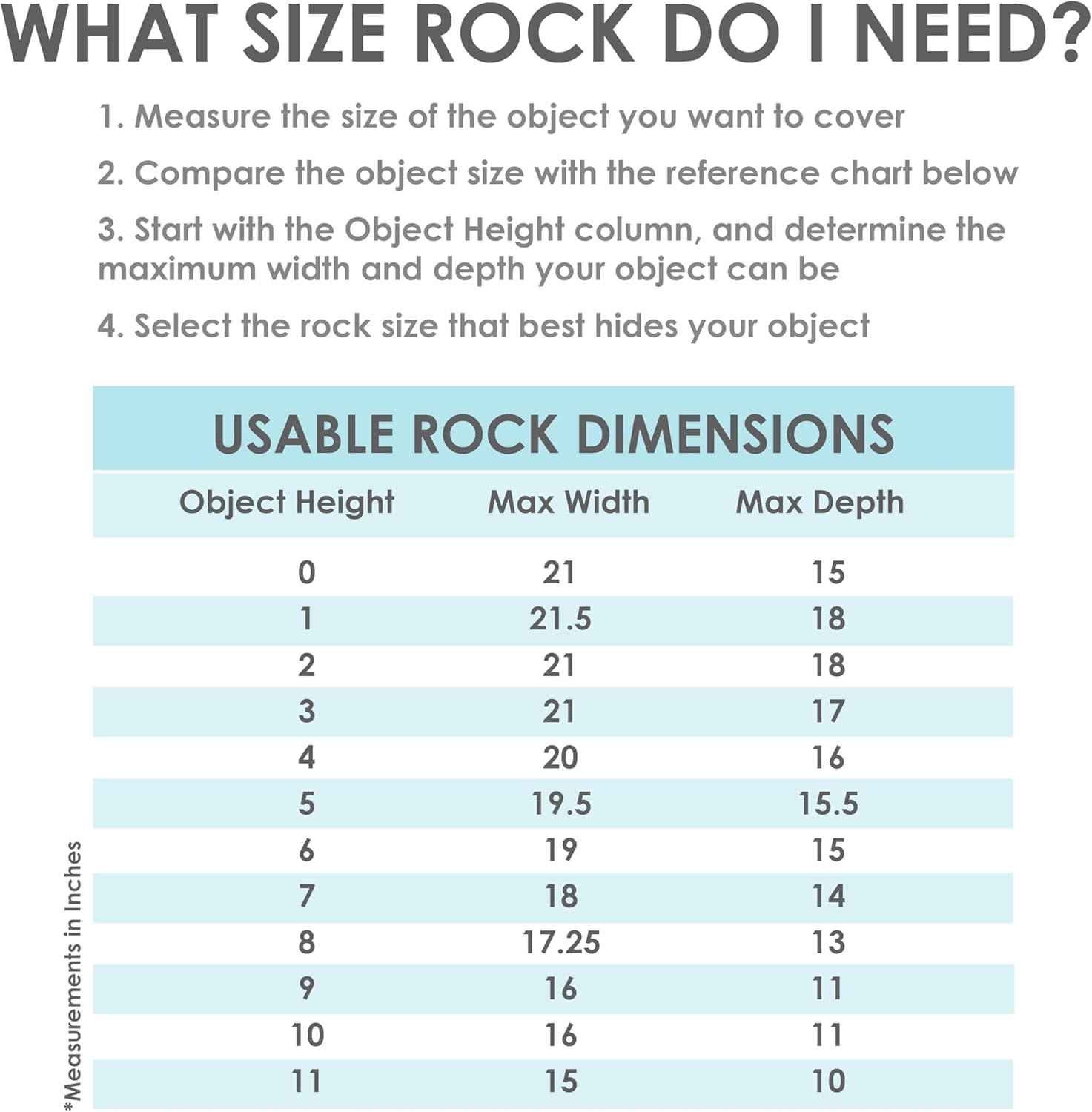 - COVERS WELLS, SEPTIC TANKS, AND MORE: Cover unsightly objects in the yard or hide a spare key discreetly with these low-profile fake landscape rocks. Each artificial boulder measures 22.75" W x 19.5" D x 14" H and weighs 2.6 lbs. The stakes included with each rock measure 1" W x 12" H each.