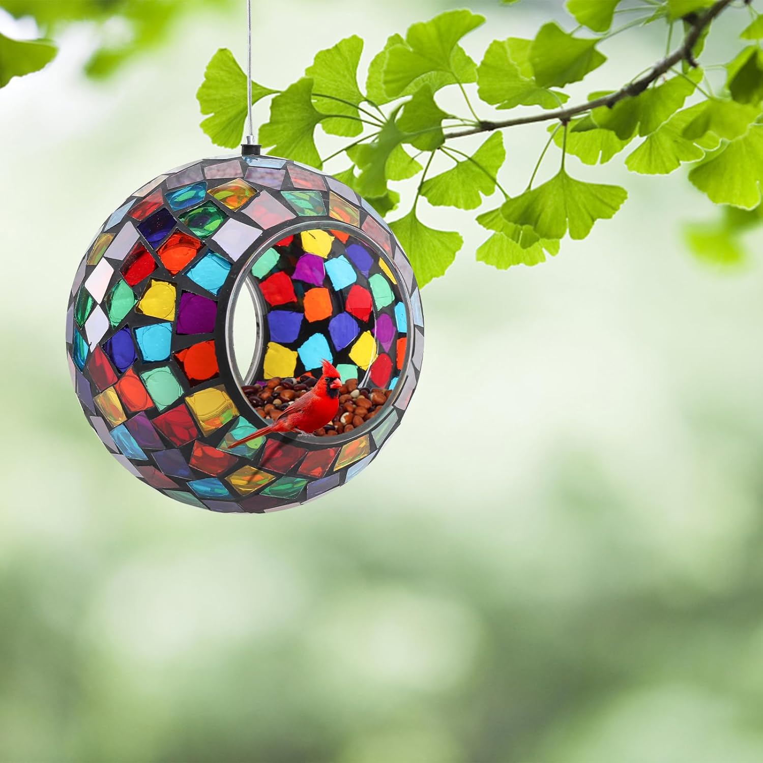 - Mosaic Bird Feeder: Has a colorful mosaic glass design which reflects beautiful lights in the sun and attracts birds to feed, making your home and garden more lively