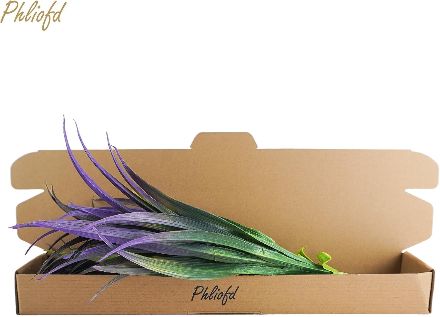 32Pcs Artificial Grass Fake Plants 17.3in Outdoor Plants UV Resistant Faux Greenery Stems Fake Grass for Home Window Garden Office Patio Pathway Front Porch Halloween Décor Green & Purple
