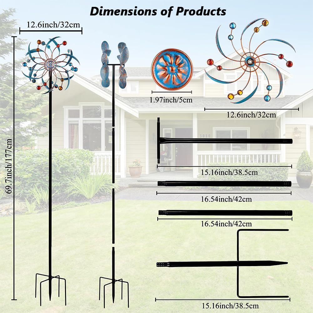 - Durable Decoration:The wind spinners outdoor is made of durable metal and exquisite welding technology. This garden pinwheels has long-lasting waterproof and rust resistant coating, which can be used in various weather conditions