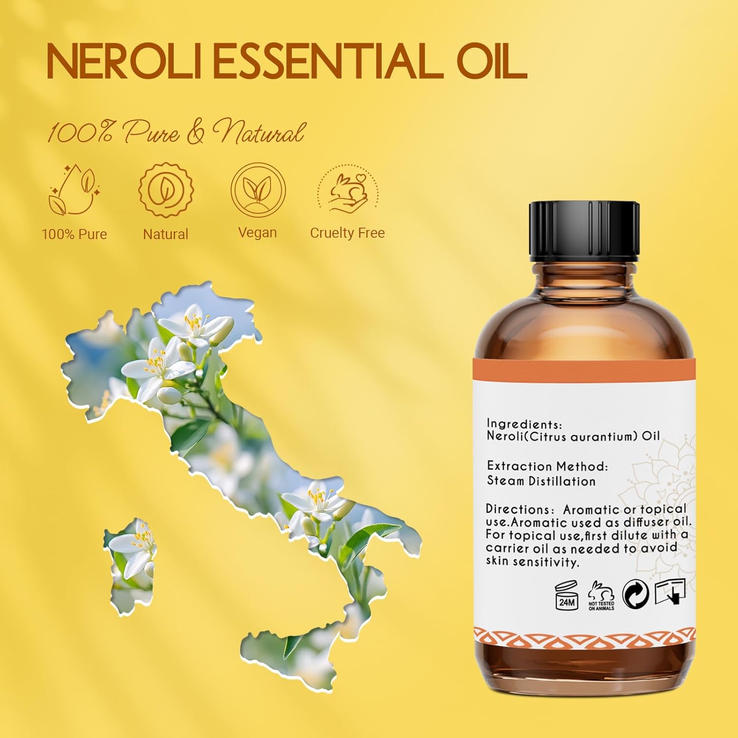 - Pure Neroli Oil: Our neroli essential oil organic is steam distilled from high-quality neroli flowers, it is free from any synthetic additives or other impurities, ensuring that you get the best possible product.