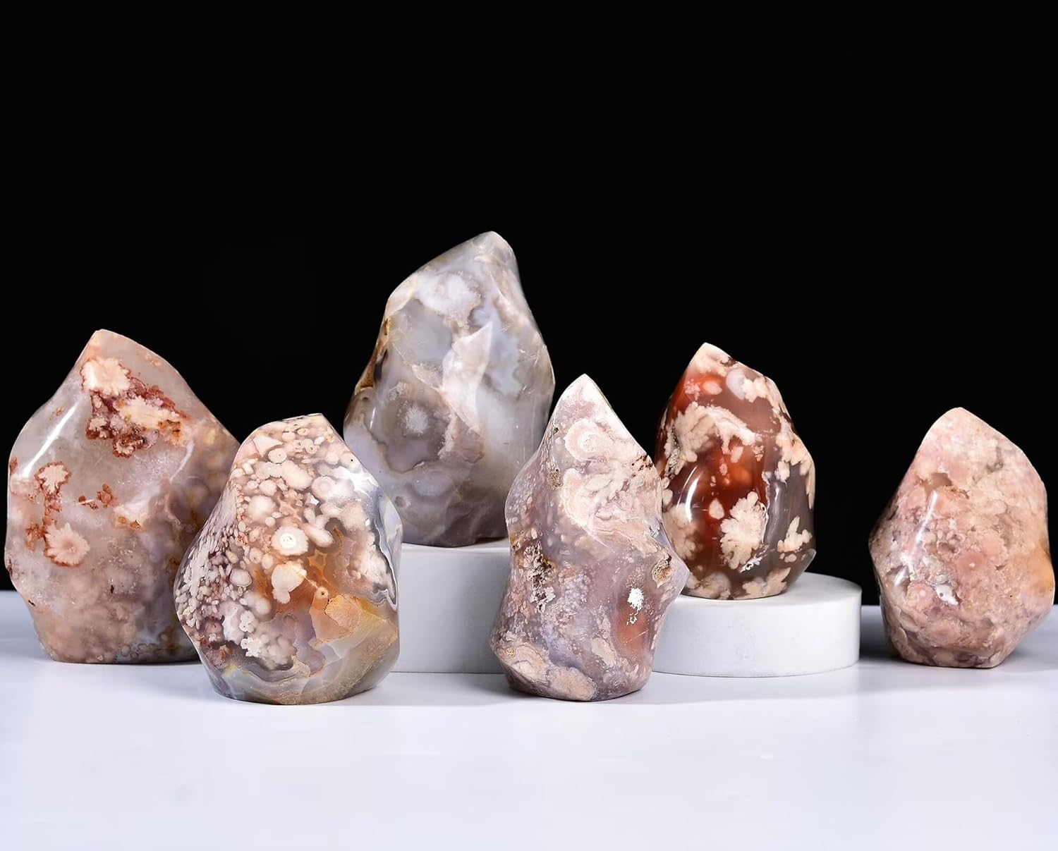 AMOYSTONE Cherry Blossom Agate Flame Shaped Stone Towers Obelisk Flower Agate Natural Healing Crystal Quartz Reiki Energy Decoration Home Office 0.6-1.0LBS