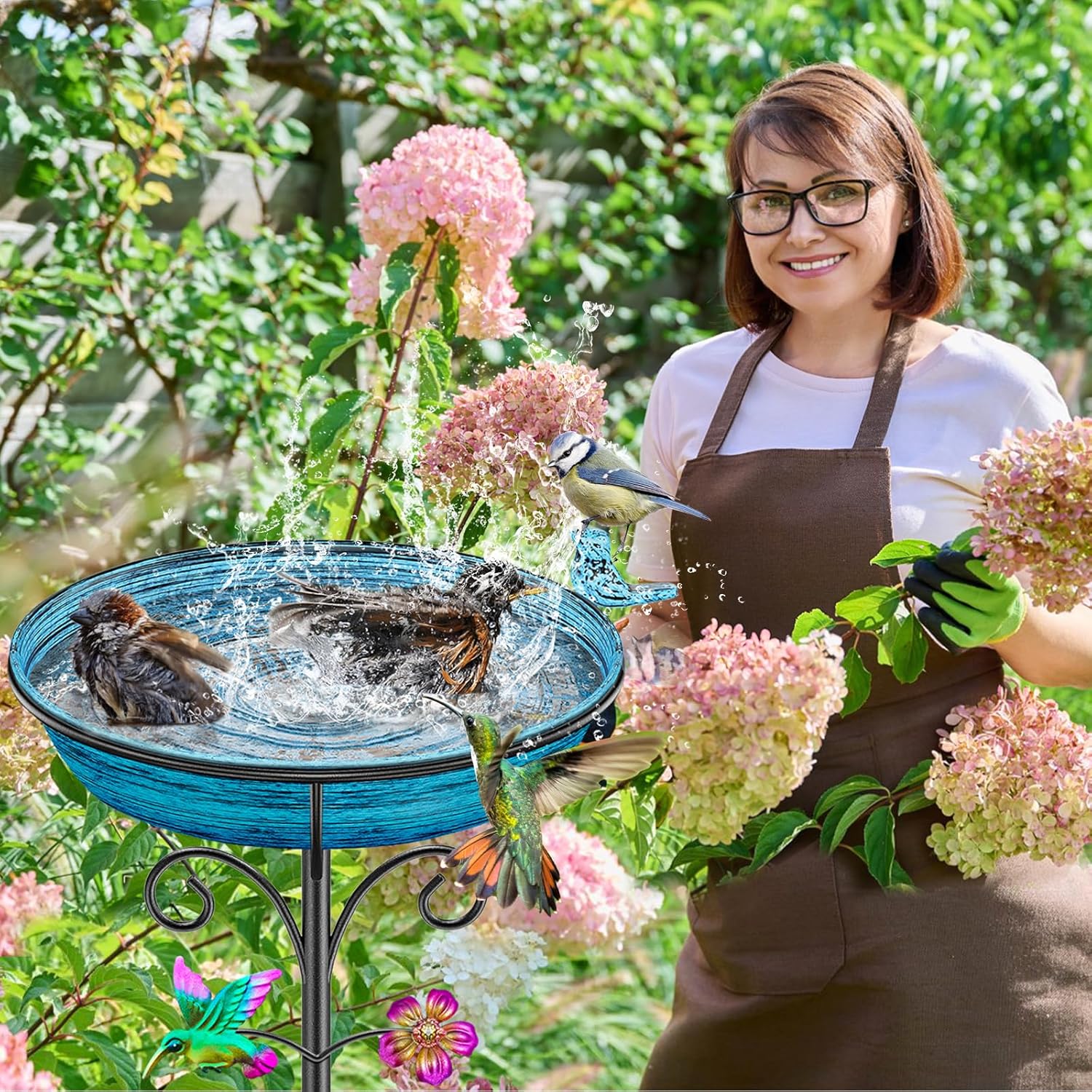 - 【New Upgraded Bird Feeder】Upgraded 5-forked base that resists tipping, adds more stability for this birdbath, the feeder uses thicker iron as the material, making it more sturdy and reliable.