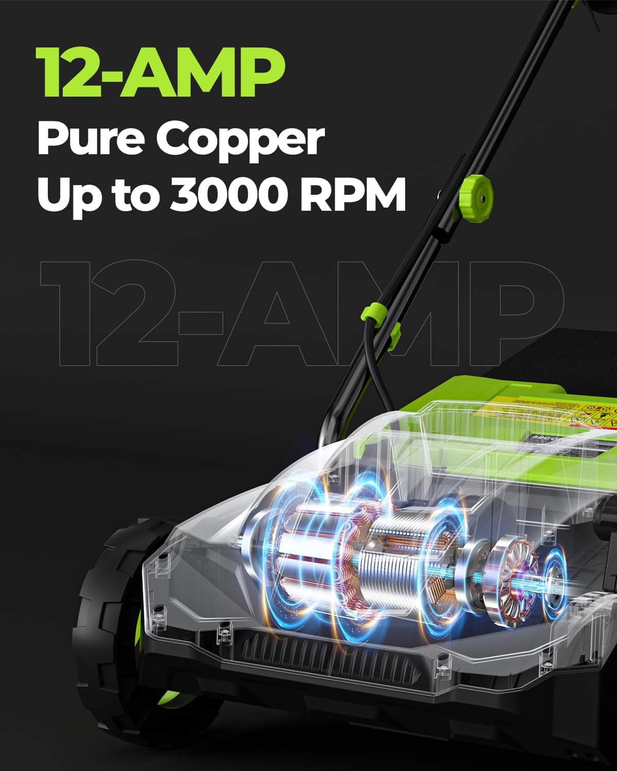 - 12AMP Powerful Motor: BUCOTOD 13-inch working width lawn electric dethatcher and scarifier is boasded with a 12-Amp pure brass motor with a no-load speed up to 3000 rpm to ensures efficient and consistent grass raking and scarifying.