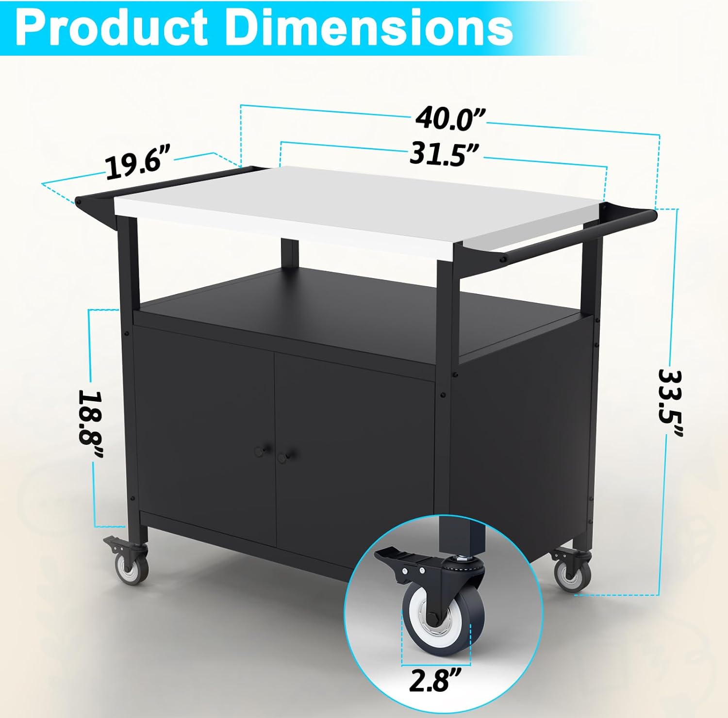 Outdoor Grill Table with Storage, Stainless Steel Grill Cart, Outdoor Kitchen Island Prep Stand Station,Blackstone Griddle Stand, BBQ Serving Cart Rolling Bar Cart with 4 Utensil Hooks