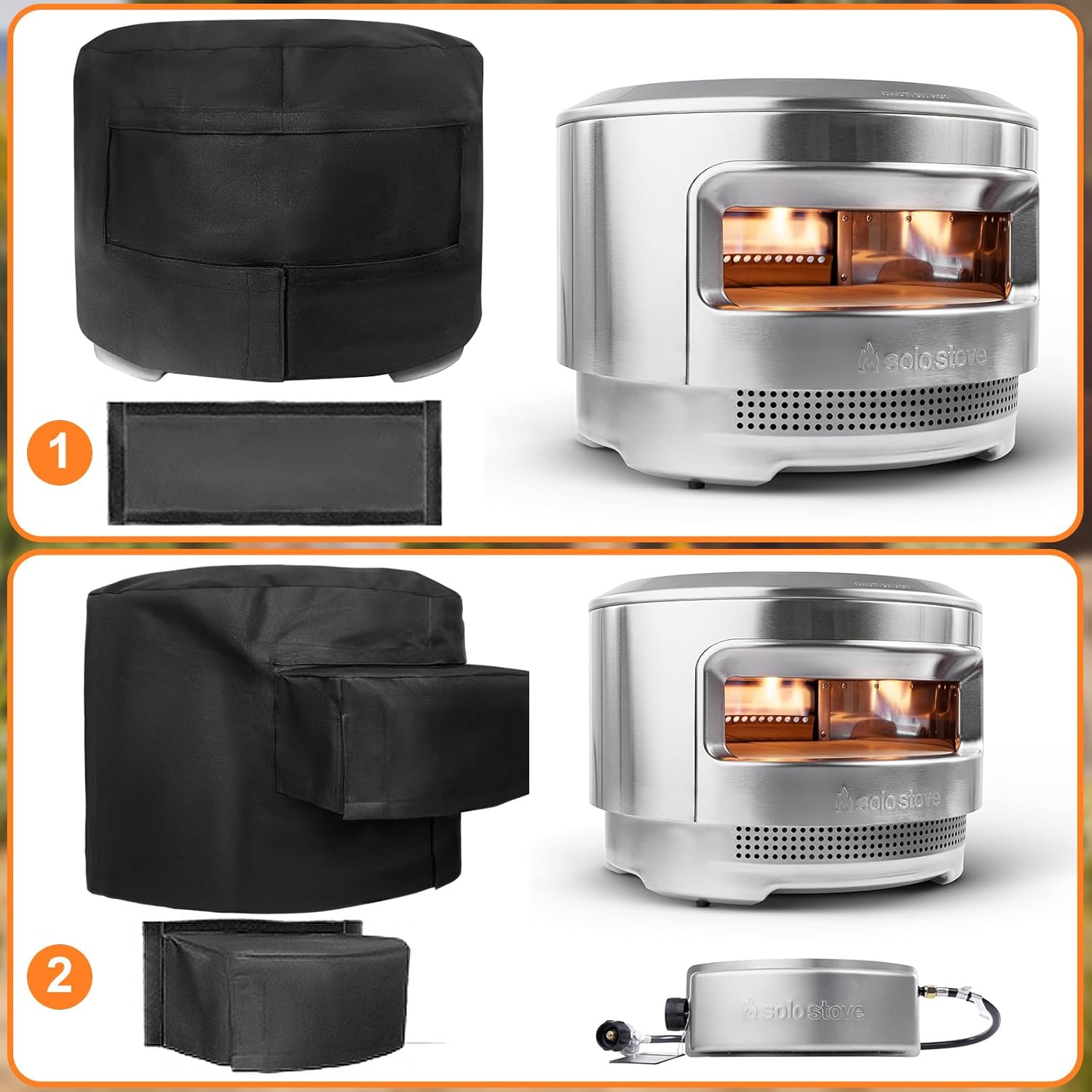 - Premium Material: 100% Polyester/Oxford fabric is a classic choice for solo stove pi pizza oven cover, with an added UV-stabilized & Water-resistant coating and a water-resistant laminated backing could prevent water from seeping through cover, keeps your oven dry and clean in all weathers and ready to use. It's not only super practical but it also keeps a modern look in your backyard