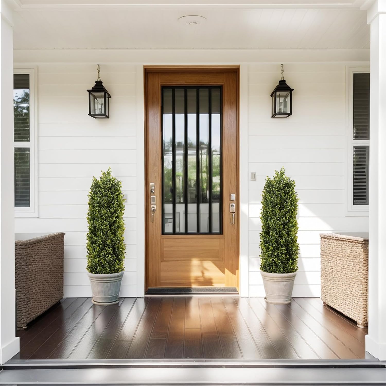 - UV-Resistant & Weatherproof: Designed as durable faux plants outdoor, these artificial topiary for outdoors withstand sunlight, rain, and wind, keeping their vibrant green color year-round