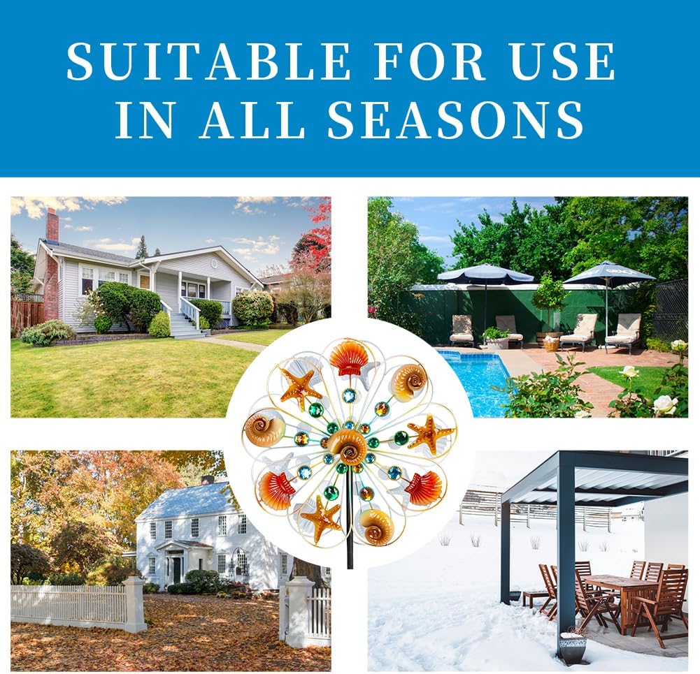 - Super Construction:This wind spinners outdoor has a solid metallic construction with easy spinning, blades can smoothly rotate on sealed bearings, giving the illusion of being by the sea