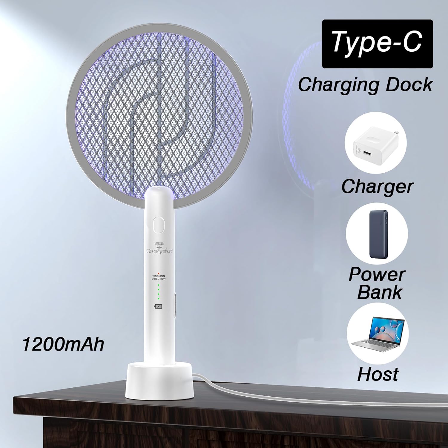 - Two in one mode: In ON1 mode, you can press the button and manually wave the electric racket to start electric shock. When you release this button, it will immediately cut off the power supply to ensure your safety. In ON2 mode, the electric racket will be inserted into the base and automatically discharge, freeing up your hands