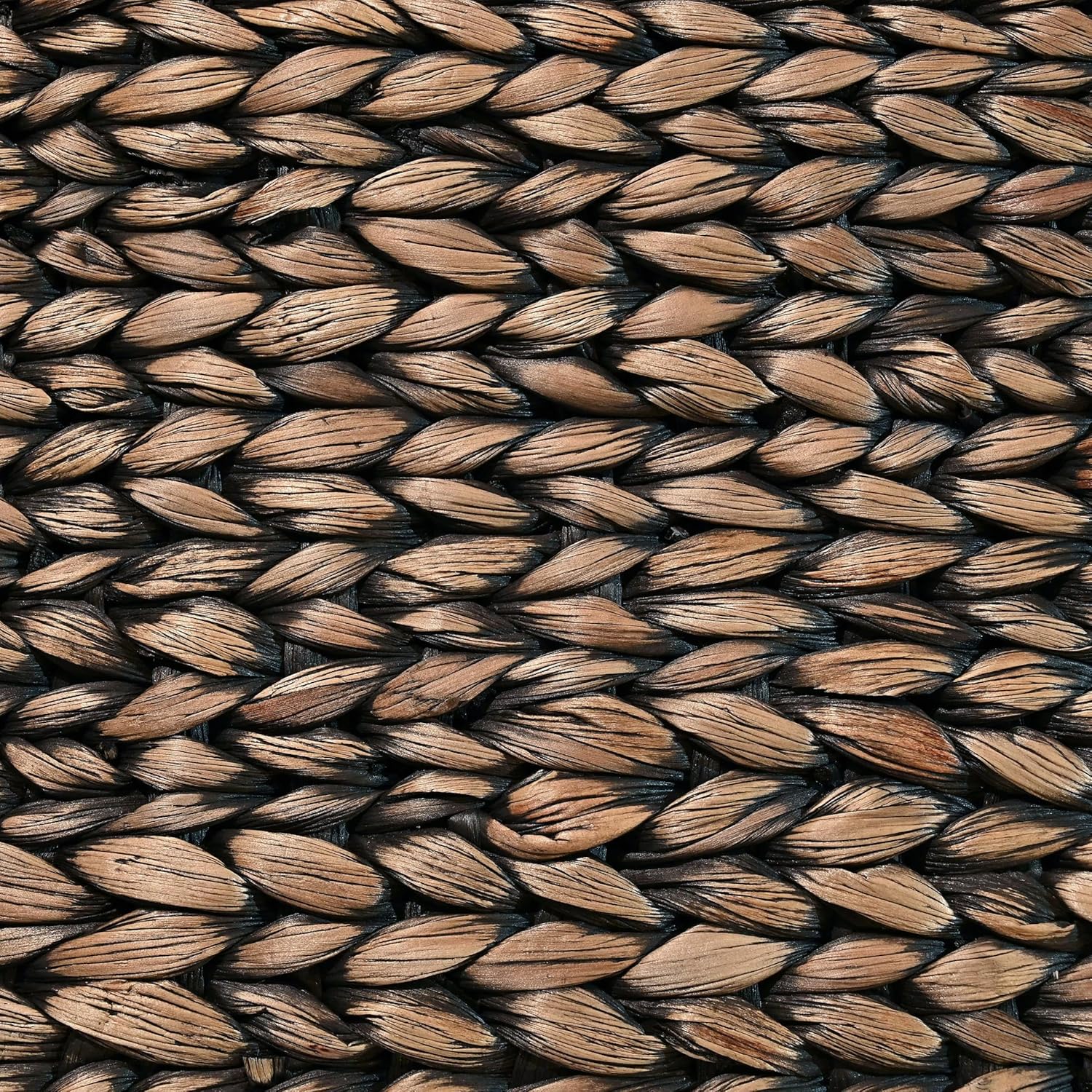 happimess BSK2001B-3SET Clara Farmhouse Classic Handwoven Hyacinth Rectangle Floor Wicker Storage Baskets with Handles, Brown (Set of 3), Seagrass Containers for Decoration in Living Room, Bedroom
