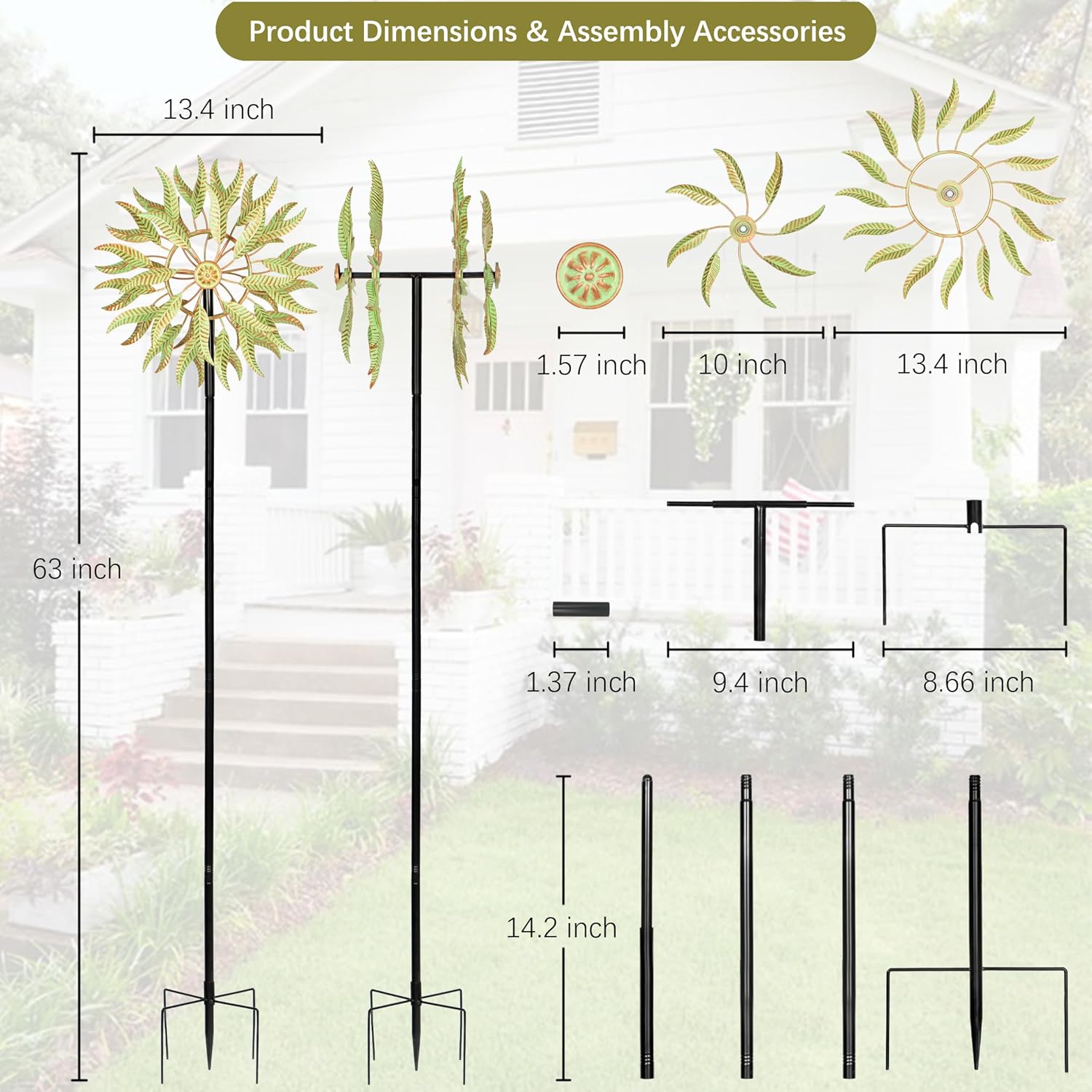 - EASY INSTALLATION: The simple and sturdy metal construction of the Large Wind Spinners Rotator makes it very easy to install, with the entire process taking only 2-3 minutes. You can easily insert the garden spinner into the soil or grass without any tools.