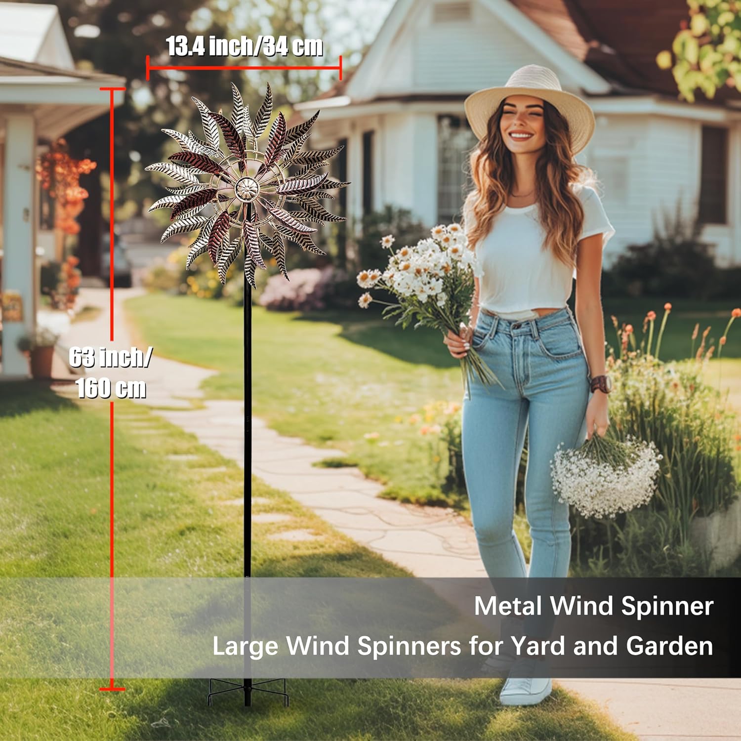 - LARGE WIND SPINNERS: Add a touch of pizzazz to your outdoor decor with the Metal Wind spinner. It spins with the breeze and shines in the sunlight. Great for trails, patios, lawns and garden decorations.