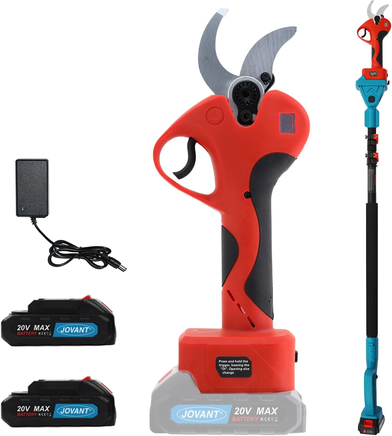 - JOVANT Electric Scissors Configuration:Comes with 1*portable bag,1*40mm electric scissors,1*telescopic pole,2*2A batteries,1*American charger.