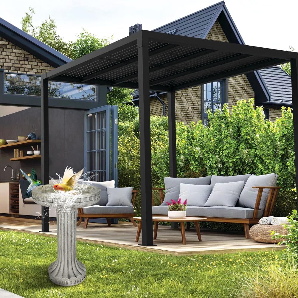 - 【Great Size】 The outdoor concrete bird bath adds a modern building pillar style touch to any outdoor space. Measures 16" in diameter x 24" H overall. Ideal size make this concrete bird bath fountain serve a dual purpose as both a decorative fountain and a cement bird bath, making it a substantial and eye-catching garden decoration to your outdoor space.