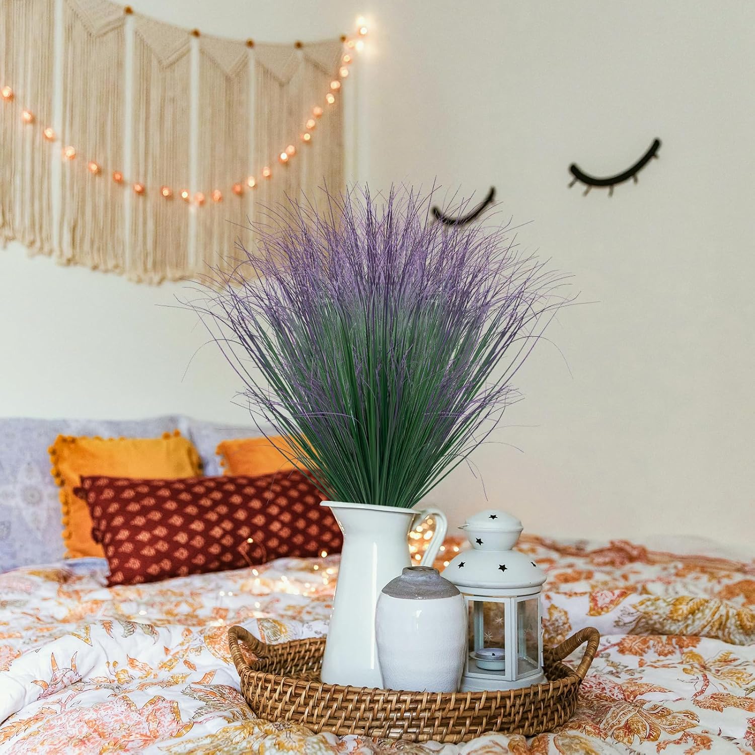- 【PERFECT DECORATION】Artificial outside plants looks like reed grass are commonly utilized for both outdoor and indoor decorations in porch, kitchen,windows, patio, gardens, vase filler, hotels, offices, balconies, farmhouse and weddings decor.When paired with POTS, vases or outdoor soil, these artificial grass plants can inject spring energy and vitality into your room or garden, creating a comfortable and harmonious atmosphere.