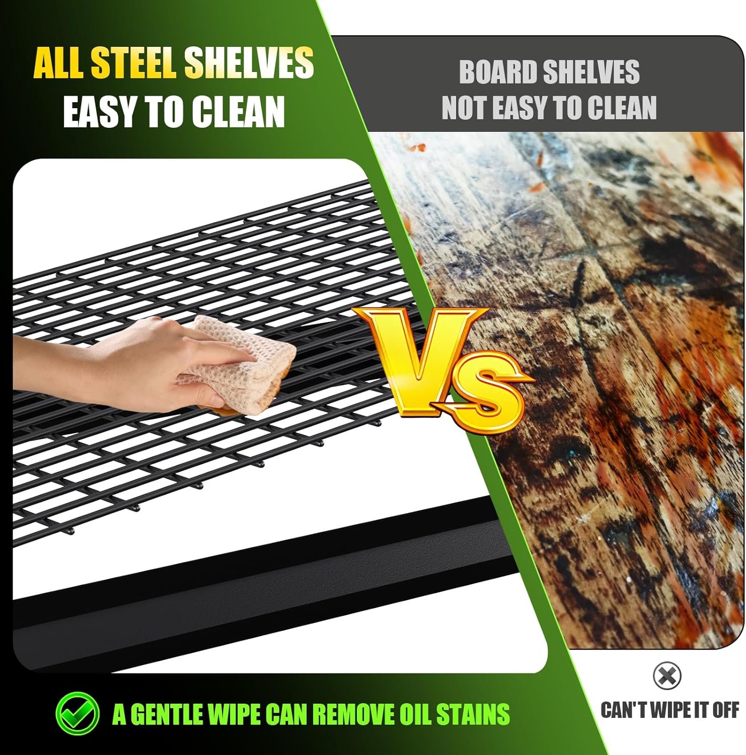 - 【Easy to Clean】Metal shelving use advanced black powder coating, which makes the metal shelving have strong moisture-proof and fire-resistant properties, and have a longer service life than ordinary wood and plastic shelves. Garage shelving can be wiped with a dry cloth during use, easy to clean, zero cost maintenance.