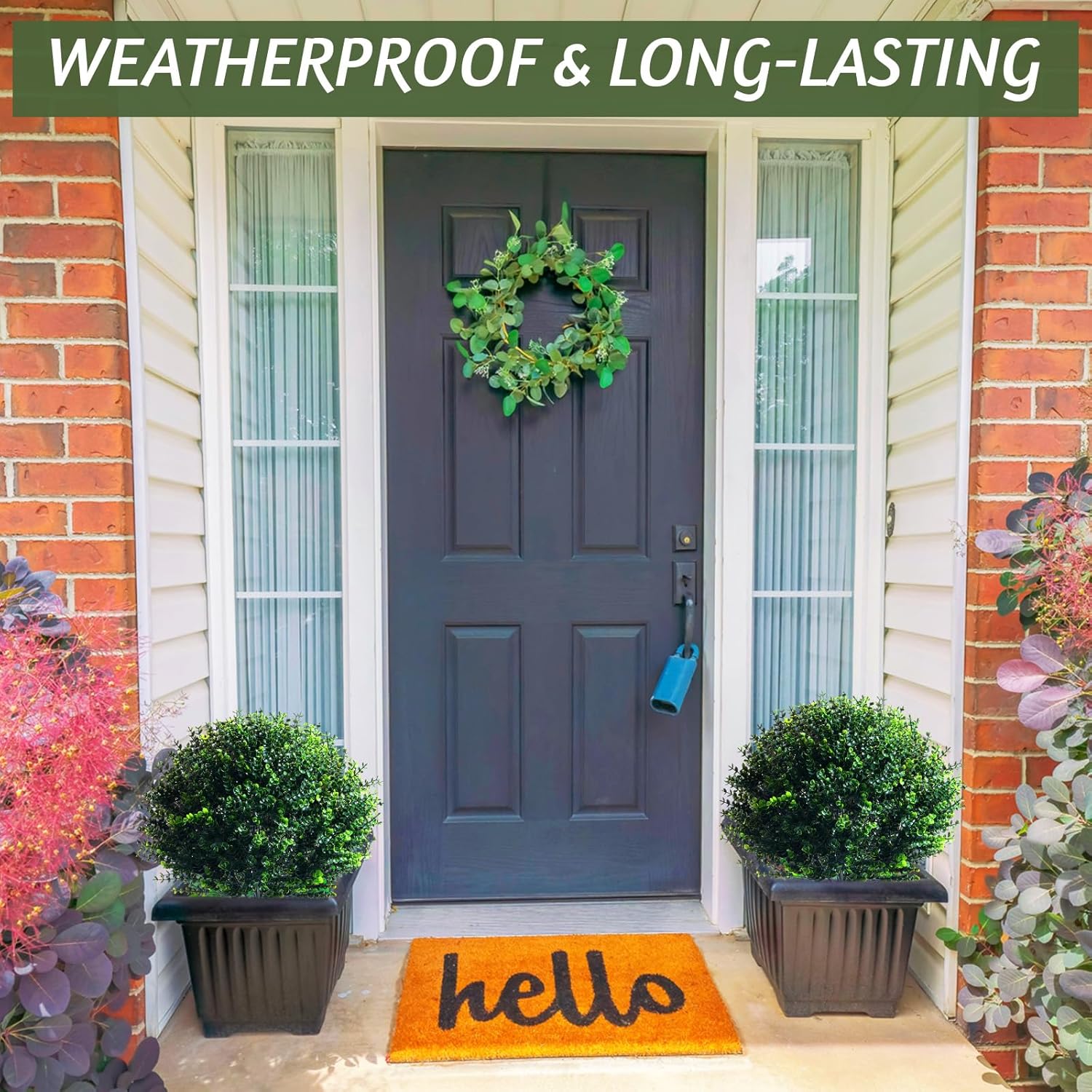 - Wide Use: the artificial boxwood plants outdoor pushed in the ground are ideal for enhancing a variety of settings; Whether the front porch, balcony, backyard, pergola, garden, patio or hedge, faux boxwood balls with realistic leaves would bring you a feeling of relaxation; It's ideal for indoor and outdoor garden decorations, also ideal for friends and relatives as housewarming gifts