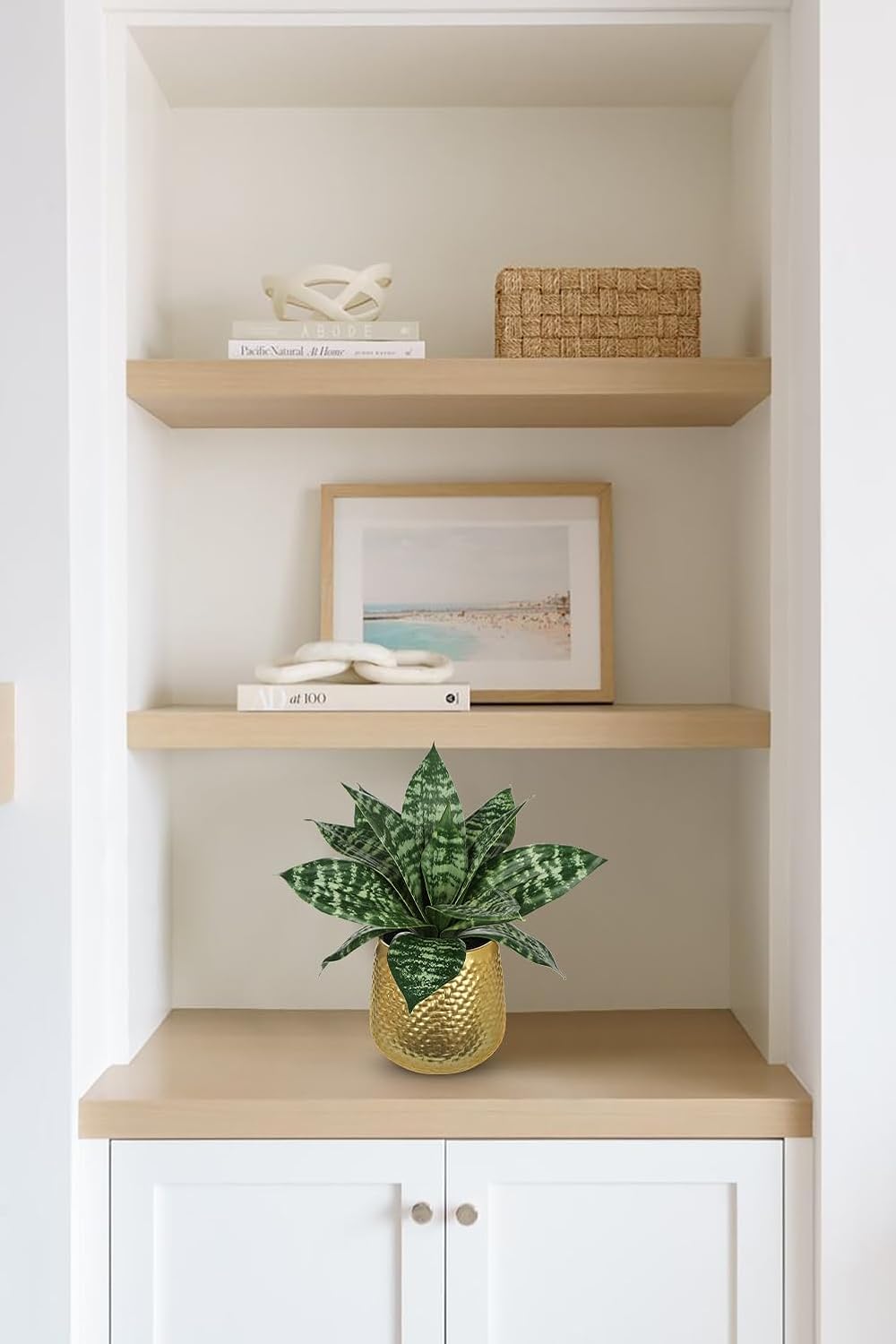 Hollyone Artificial Snake Plants 9" Faux Agave Succulent Plant Potted in Gold Metal Pot Fake Sansevieria Aloe Tropical Plant for Desk Modern Office Home Bathroom Indoor Outdoor Decor