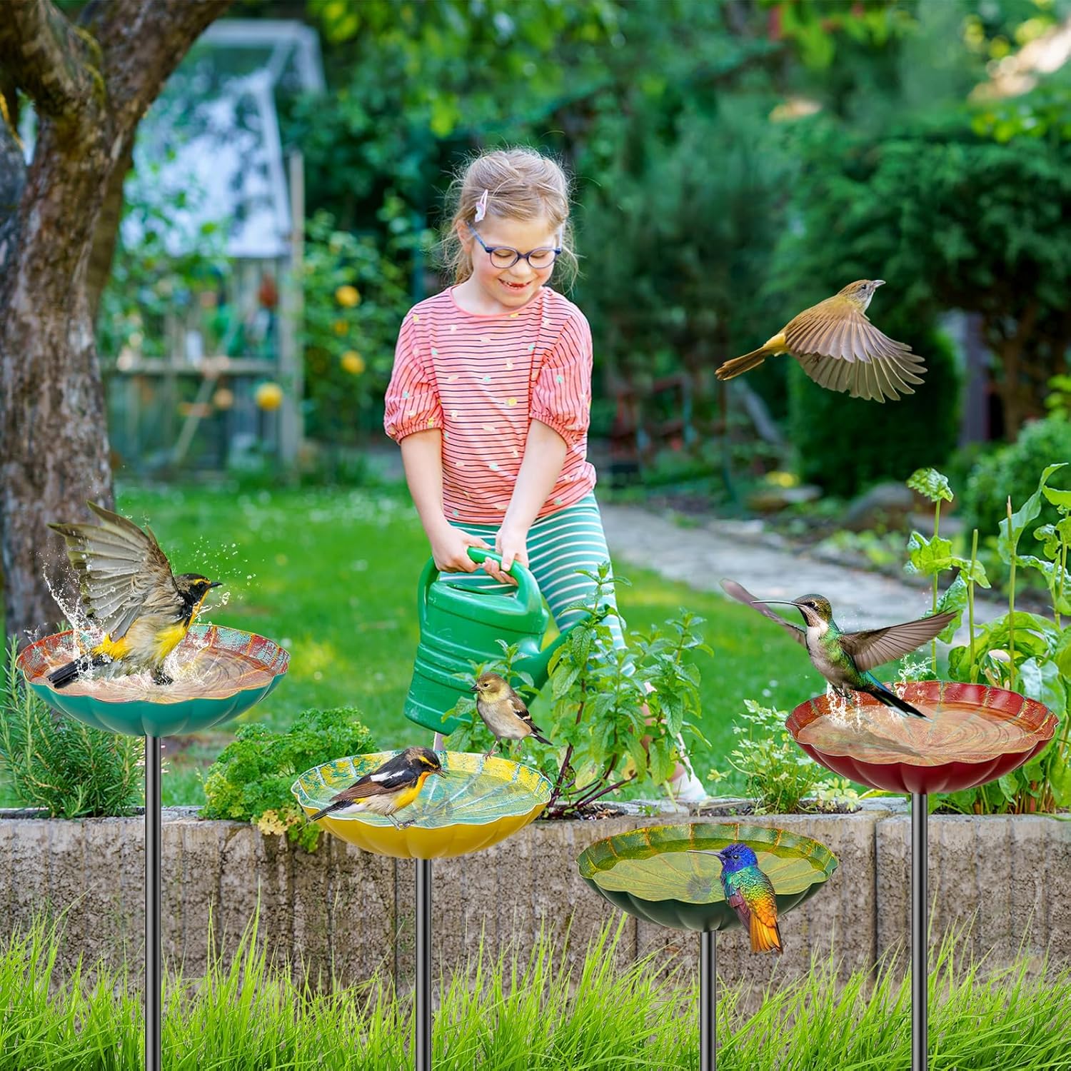 - Durable Design: The bird bath for outside is made of high quality material, waterproof, not easy to fade. The pole of the hummingbird birdbath is not easy to break, and the two sturdy tips allow the birdbath to stand firmly in the garden soil, can be used for a long time