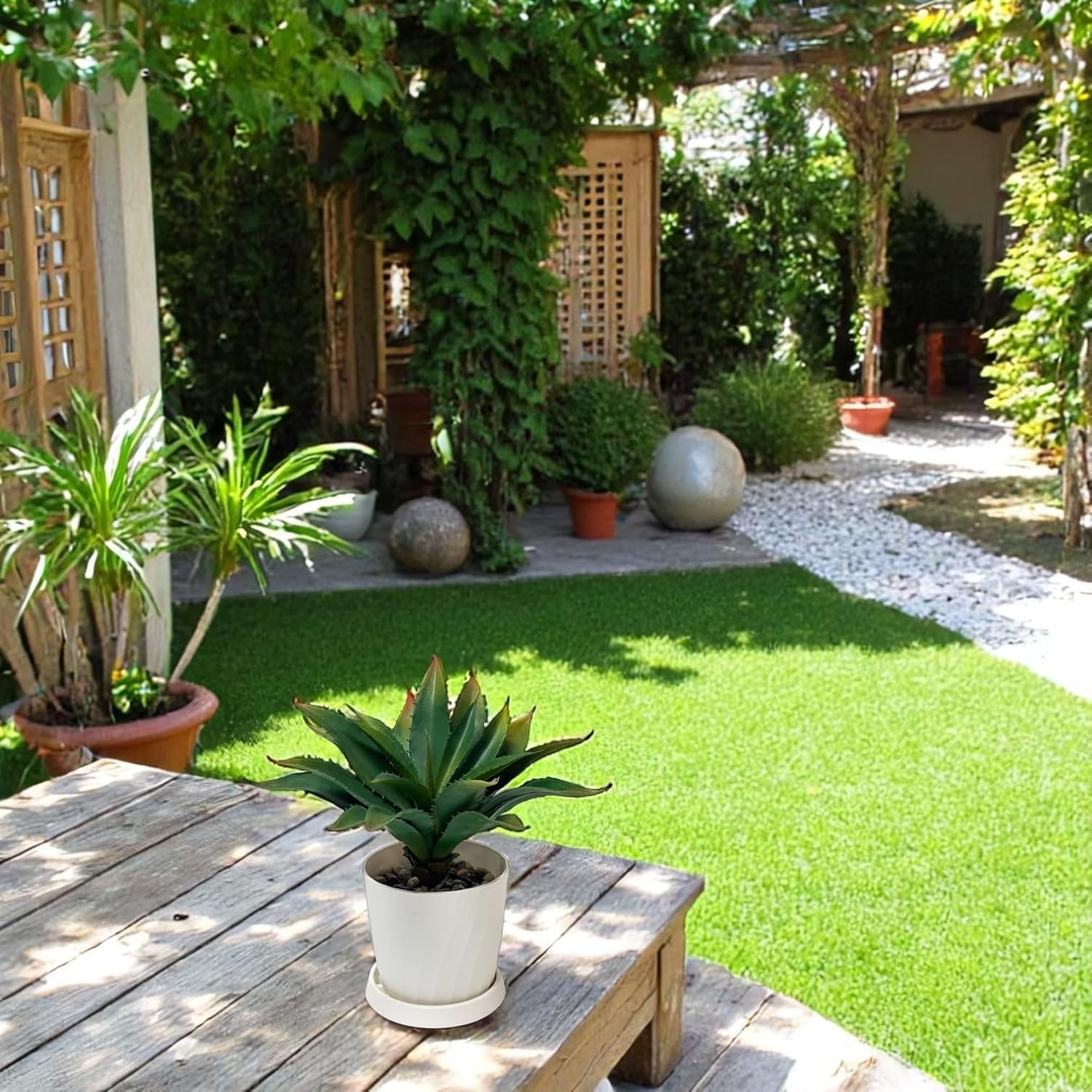 - Premium Quality & Weatherproof – Crafted from high-grade polyurethane, our artificial aloe plant maintains its vibrant color and shape whether placed in garden gravel, along pathways, or exposed to sun and rain - no fading or warping.