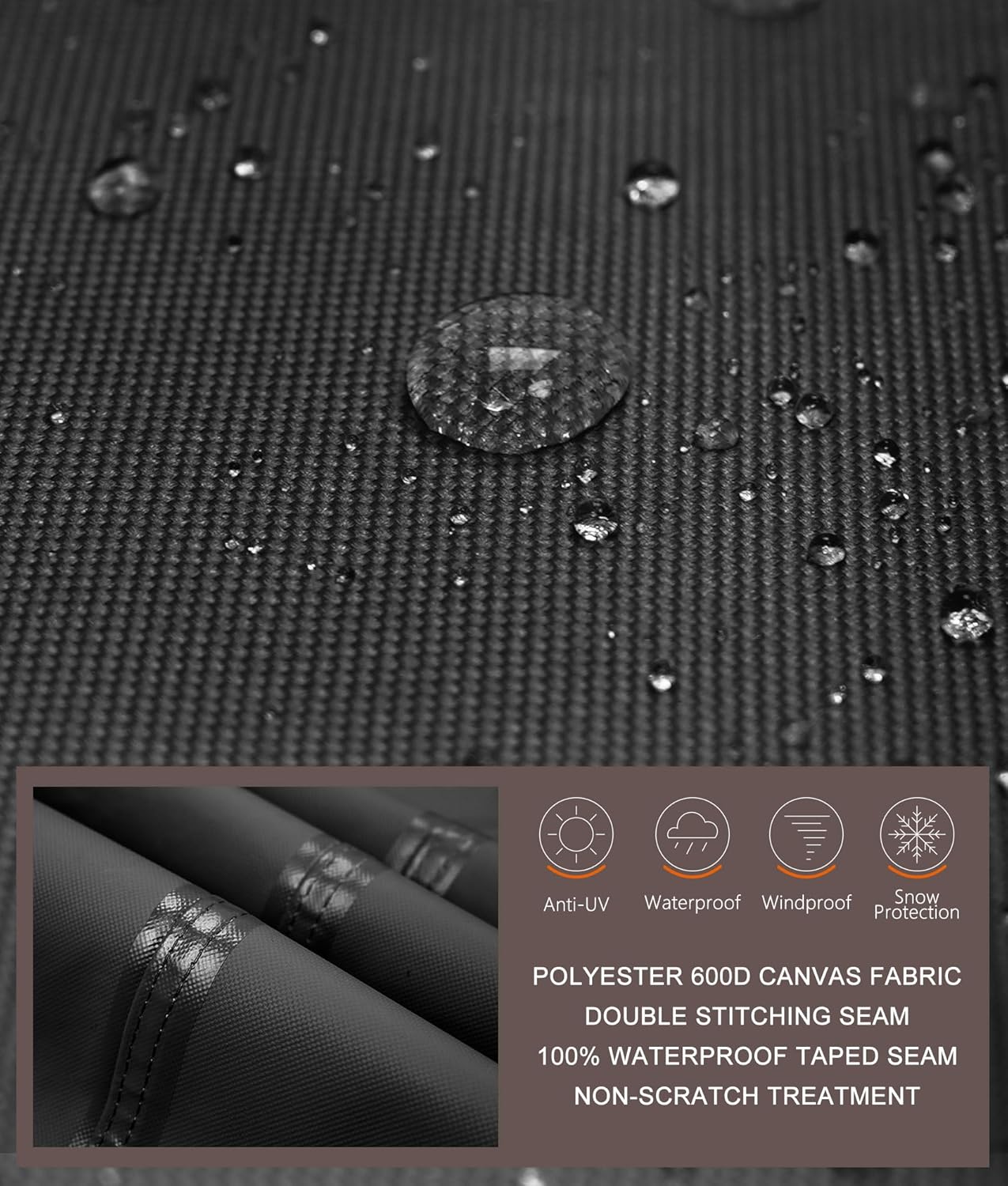 - Made of 600D polyester canvas complex with waterproof backing. Tough enough to keep rain, hail, snow, dust, leaves and bird droppings away.